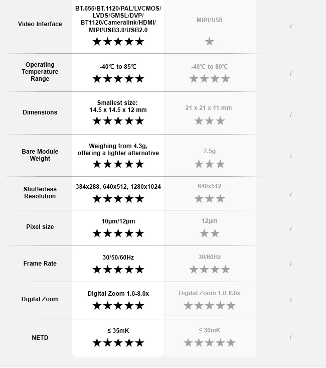 ● 8 to 14 μm spectrum, pixel size options: 10 μm and 12 μm